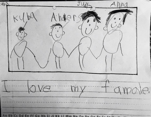 I love the way Anders is with young children. He is gentle, patient, adoring, loving, and truly smitten. Here he is at a party helping this new friend apply some stickers to her dress. She followed him all around and he treated her as if she were the most precious child at the party. He is such a great kid, such a kind boy.